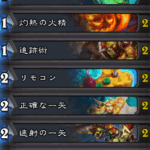4マナから5マナに弱体調整のはいった「滅菌」採用のコントロールウォリアー。5マナになったとはいえ全体シールドスラムみたいなものなのでまだまだ全然強かった。あとは「無貌の傷兵」は以前使ったように「ソーリベローレ」を序盤に増やしてもいいし、相手のタイタンや超大型ミニオンをコピーしても強かった。動画ではひとまず「滅菌」が活躍してくれたので良かった!