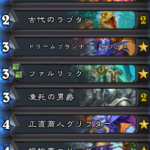 相性表によるとアグロに有利でミッドレンジとドルイドが苦手。テンポウォリには強い。動画で当たったクトゥーンウォリアーには5分らしいけどきつかったー!エリーズの猿ガチャ次第ってことで5分なのかもしれない。