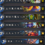 「公平な相棒」から「ボグスパイン・ナックル」を装備することができるシャーマン。そのまま武器をふれば8マナミニオンに進化させることができる。「合流石」は序盤のマナカーブを整えやすく「脱線コースター」とも相性が良い。動画ではひとまず昨日使えなかった「公平な相棒」を使うことができたので良かった!