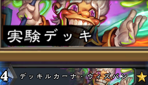 「デッキルカーナ・ウィズバン」は1枚でデッキを組むことができるカード。そのまま試合を開始するとランダムなクラスとそれぞれに対応した実験デッキでゲームをプレイすることができる。
