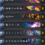 25点出せるようになるまではドローをしながらコントロールしていく構成のパラディン。前の環境の構成と比べると弱体化された平等は不採用で縮小光線が採用されている。今のアグロ、特にローグに対しては回復が強力でデッキを引き切るまで十分耐えることができた。