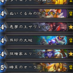 秘策を中心としたパラディン。突撃!探検同盟のカードは「シアマト」。復刻したカードは「仇討」と「謎めいた挑戦者」と「炎の王ラグナロス」を採用。他のカードセットからは「鐘を鳴らす見張り」や「ティリオン・フォードリング」等を採用している。