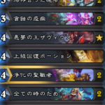 「ダン・バルダー橋」を使用してからミニオンを展開する動きが強い偶数パラディン。断末魔ミニオンにもバフが乗るため「ネルビアンの卵」や「貴族の乗騎」とも相性が良い。「勇気の指輪」は他のカードが強力なため活躍する機会は少なかったが、動画ではクエストローグ相手にうまく使えたので良かった!