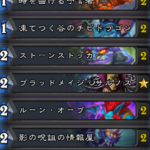 除去に気を付けつつバフされたミニオンを並べる動きが強力。AOEがないので一旦ボード取られるとちょっときついけど、剣竜騎乗やボーンメアやティリオンで十分巻き返せた。強かったです!